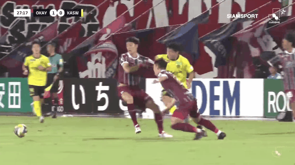 90+5’挺身而出!仲间隼斗抢点破门,冈山绿雉2-1柏太阳神