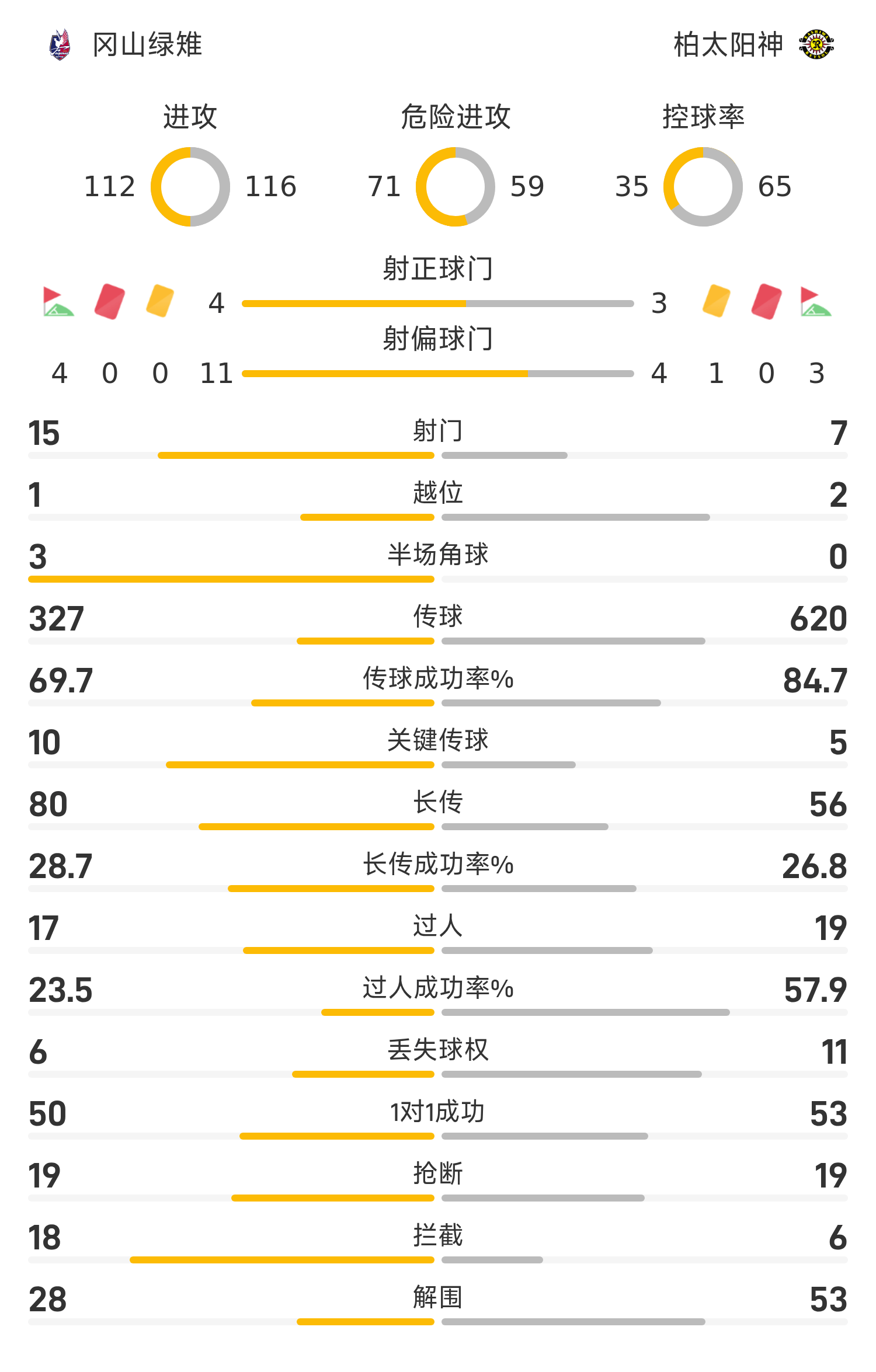 技术统计冈山绿雉首发阵容:49-布罗德森、43-铃木喜丈(62’15-工藤孝太)、2-立田悠悟(32’28-松本昌也)、18-田上大地、24-藤田息吹、8-江坂任(82’33-神谷优太)、88-柳贵博、41-宫本英治、19-岩渊弘人(62’27-木村太哉)、39-佐藤龙之介、22-一美和成(81’99-卢考)