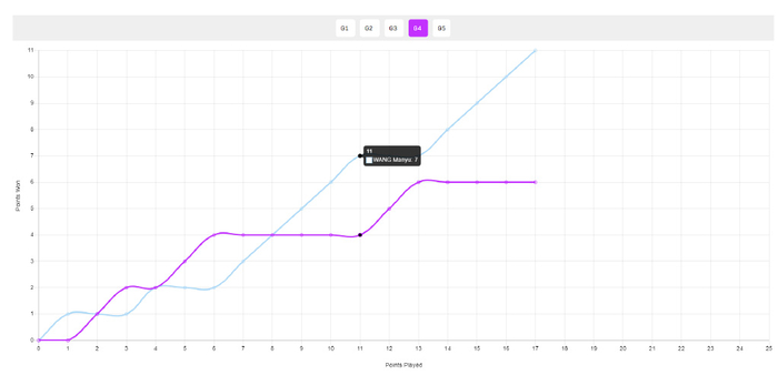 第四局对于王曼昱来说是生死一线,两人4-4后王曼昱一波3-0拉开差距,最终王曼昱这一局11-6速胜拖入决胜局。