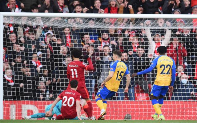 2'利物浦左侧连续传递,罗伯逊助攻若塔破门,利物浦1-0领先南安普敦!
